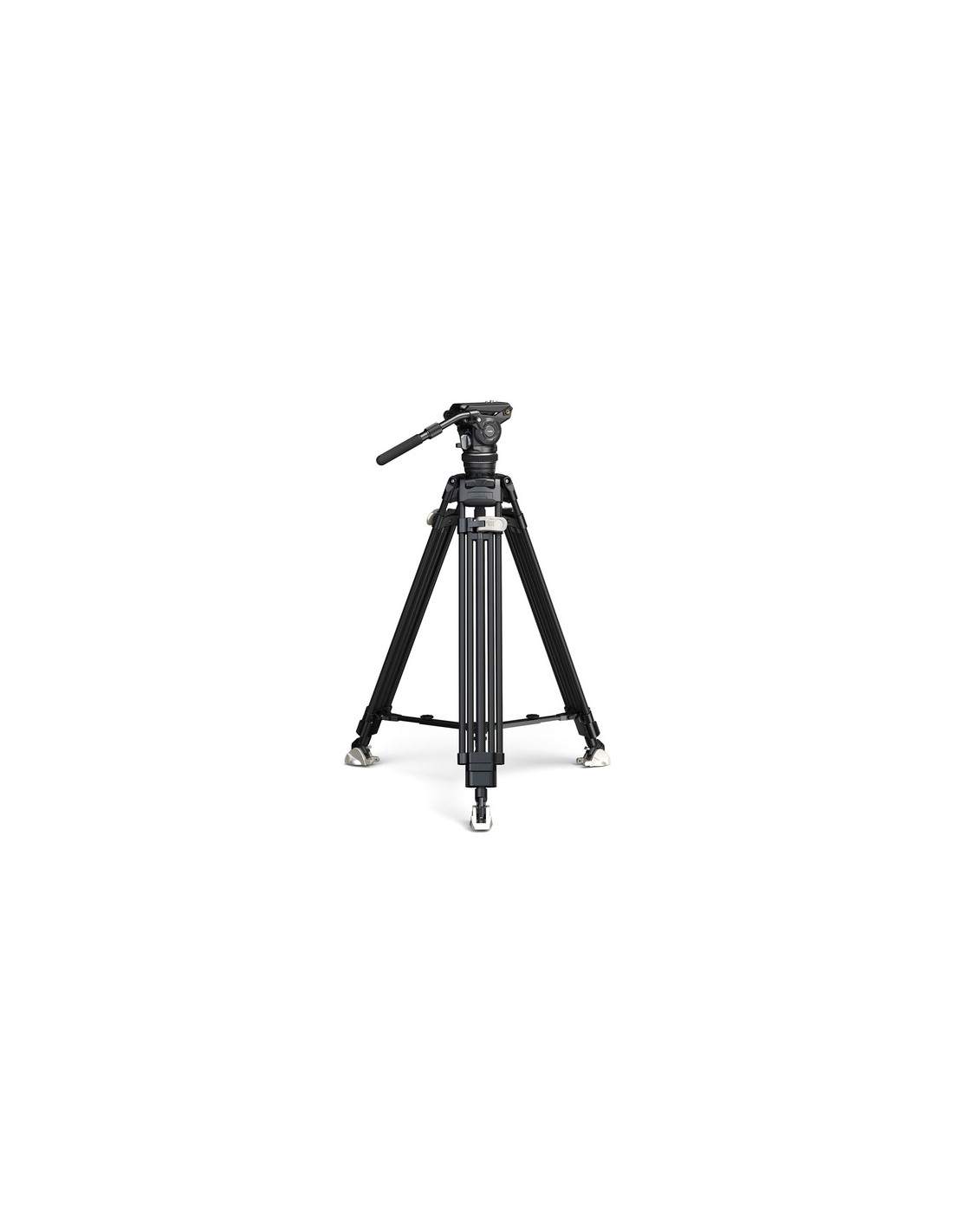 The durable fluid head features a Manfrotto 501PL-type quick release plate with a Touch-and-Go design, a 75mm half ball base that can support up to 17.6 lb, a 6-step counterbalance, stepless pan/tilt drag settings, 360° panning, and +90/-60° tilting. A telescoping pan handle extends from 13.8 to 20.9" in length, and it can rotate 360° on the right or left rosette.